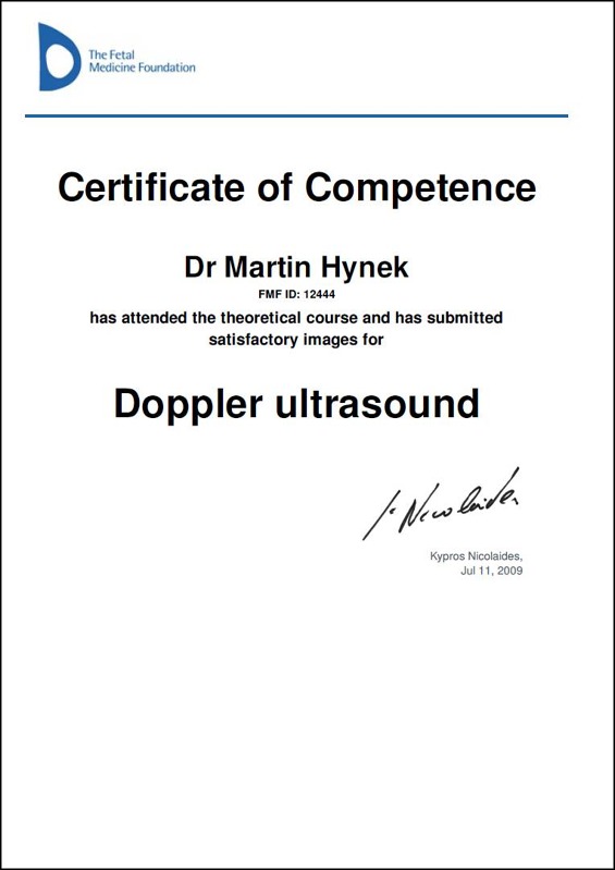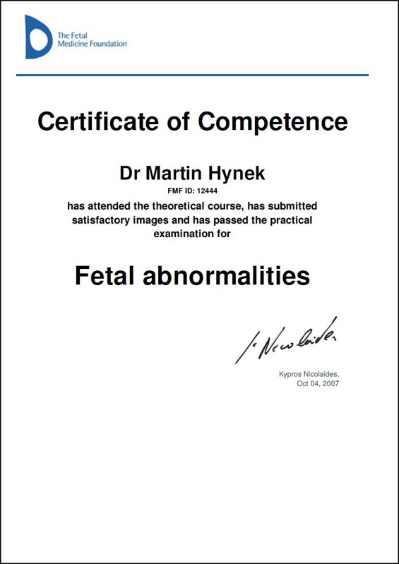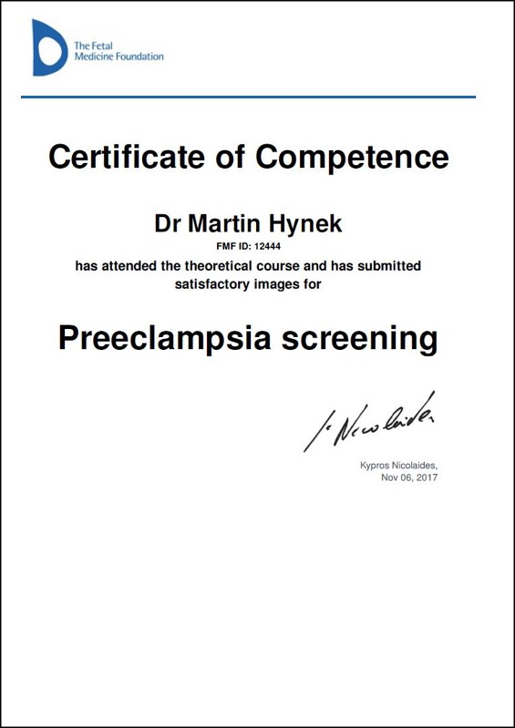 Ve screeningovém centru se Vám bude věnovat MUDr. Martin Hynek, který může nabídnout více než 18 let intenzivních zkušeností v prenatálním screeningu a diagnostice. Od roku 2004 pracoval v Centru fetální medicíny a reprodukční genetiky Gennet, v posledních letech na pozici zástupce primáře oddělení fetální medicíny. V současné době působí také v Centru fetální medicíny Všeobecné fakultní nemocnice v Praze (u „Apolináře“). Má za sebou deseti tisíce provedených ultrazvukových vyšetření a několik tisíc provedených invazivních vyšetření. Kromě atestace z gynekologie a porodnictví má atestaci i z lékařské genetiky.Kromě atestace z gynekologie a porodnictví má atestaci i lékařské genetiky a pracuje v současnosti na genetické ambulance GENvia, s.r.o. Je držitelem certifikátu pro superkonziliární ultrazvukové vyšetření ČGPS a celé řady certifikací Fetal Medicine Foundation pro ultrazvukový screening v I. a II. trimestru. Pan doktor je aktivním členem několika tuzemských i zahraničních odborných společností, autorem více než stovky prezentací na mezinárodních i tuzemských konferencích a podílel se na řadě domácích i zahraničních publikací. Získal také několik ocenění, např. ceny za nejlepší prezentace ve své kategorii na celosvětových ultrazvukových konferencích v Barceloně a Montrealu v letech 2014 a 2015 a v roce 2016 Sonkovu cenu za nejlepší publikaci s ultrazvukovou tématikou.